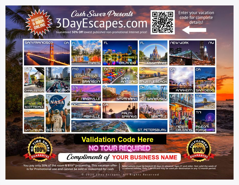Whether it’s closing a sale, boosting an upsell, or generating referrals, the idea of a free getaway pushes people to act. And the best part? You get to offer these unforgettable experiences without lifting a finger.
